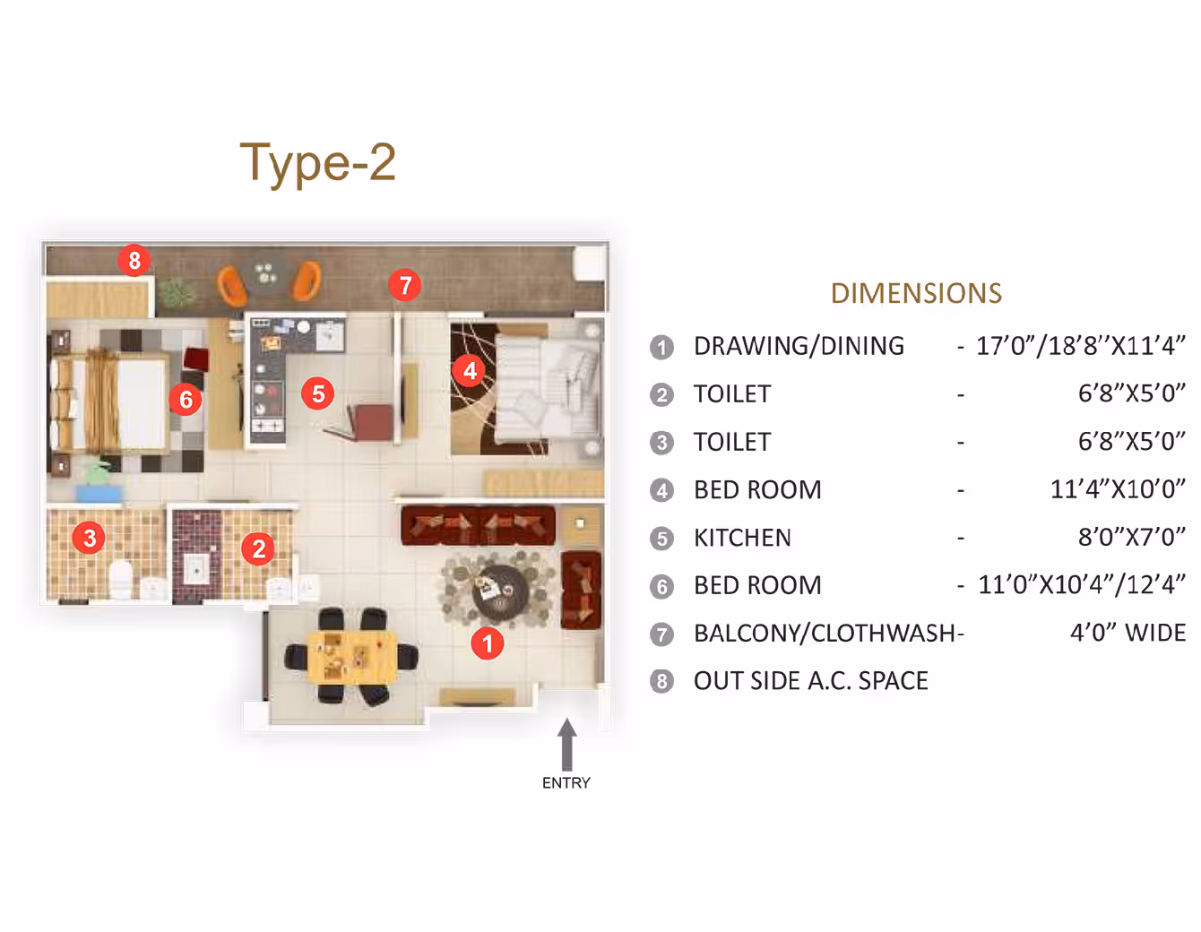 Dewas frames, Good quality ISO mark laminated flush door with ‘A’ class fitting. 3-Track Aluminium Shutter fitted with Plain Glass & Mosquito Net. PVC door in toilet.